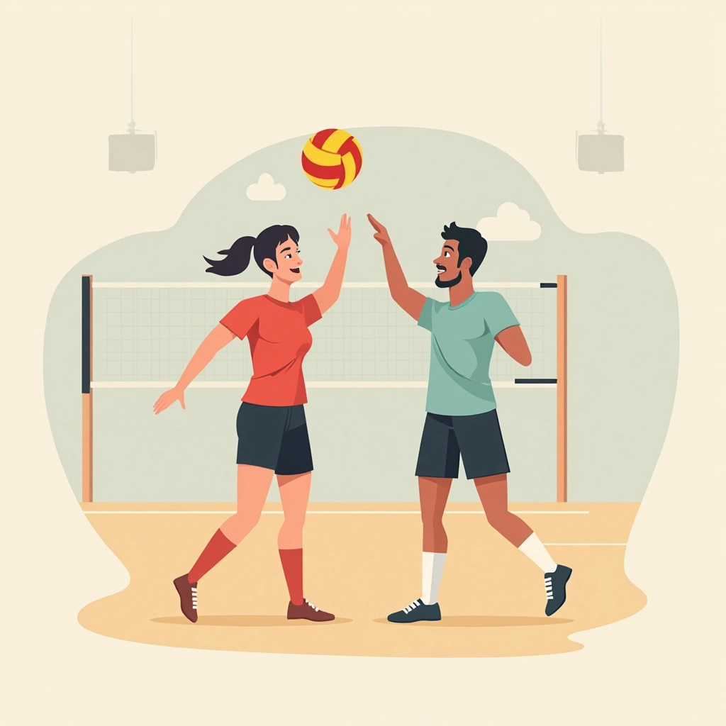 تعليم شامل للمهارات الأساسية في الكرة الطائرة بما في ذلك الاستقبال والتمرير والإرسال والضرب بقوة.